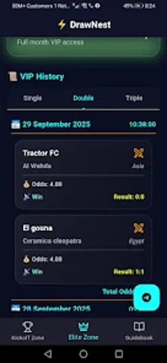 As funcionalidades incluem dicas diárias gratuitas, histórico de partidas para revisão de previsões passadas e pacotes VIP com três opções: Previsões Simples, Duplas e Triplas, que oferecem análises detalhadas de partidas. O Draw Nest é projetado para fins informativos e de entretenimento, ajudando os entusiastas do futebol a explorar potenciais resultados de partidas.